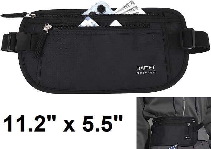 DAITET RFID BLOCKING DAY TIP MONEY BELT FANNY PACK - 11.2" x 5.5" - BLACK