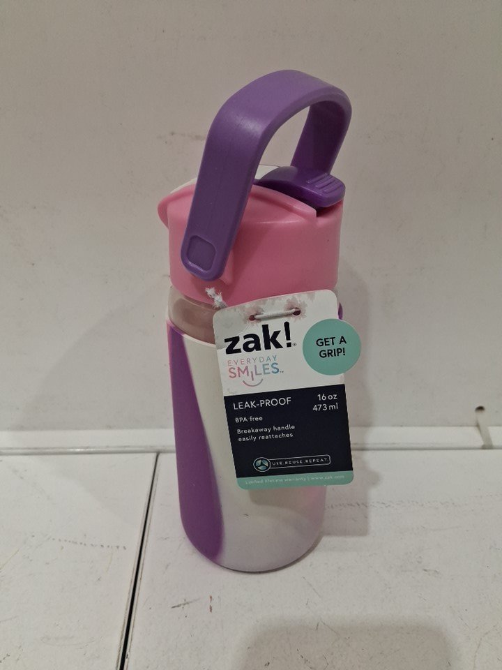ZAK! EVERYDAY SMILES get a grip leakproof kids water bottle - 16oz - pink / purple