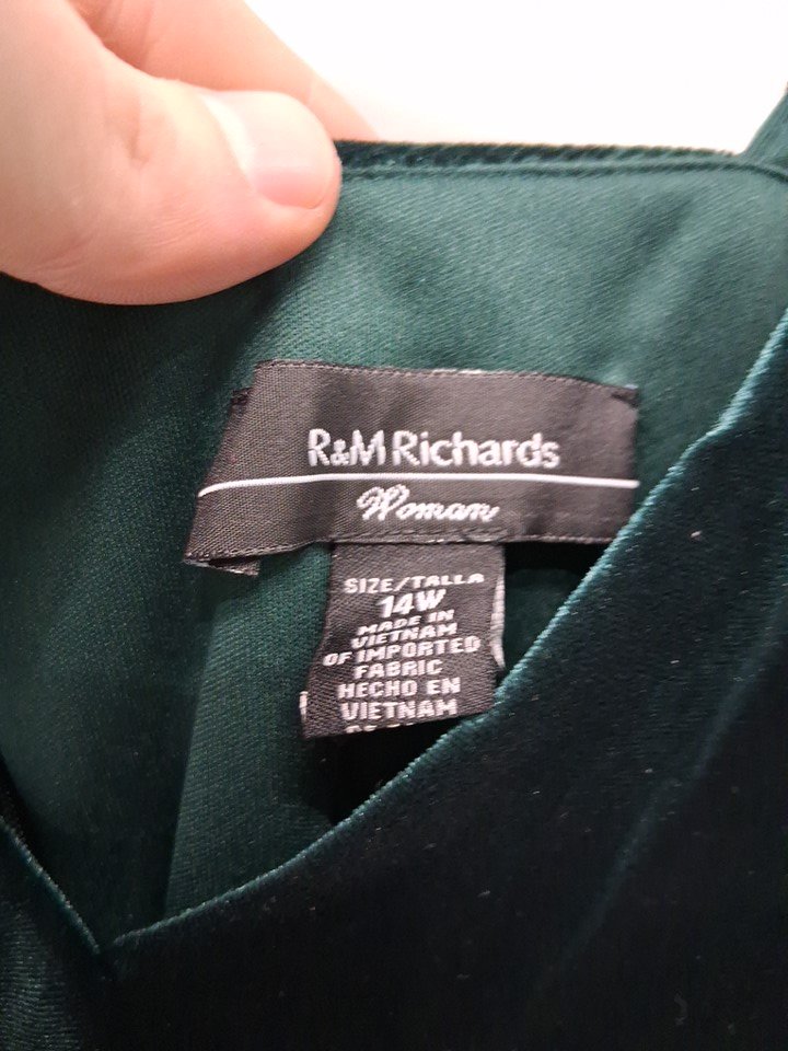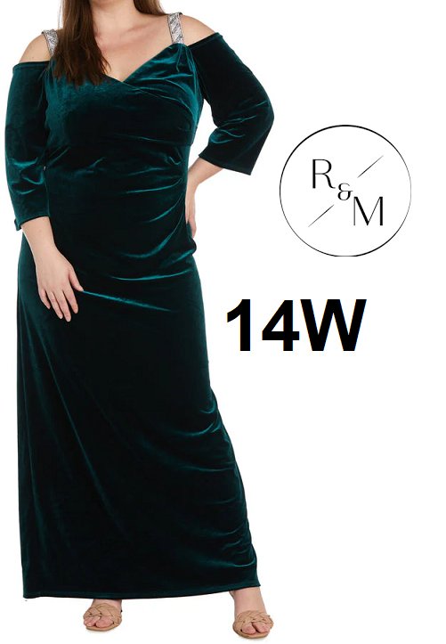 Women's R&M Richards plus size formal evening long dress - 14w - Hunter/dark green (Style: 1489W)