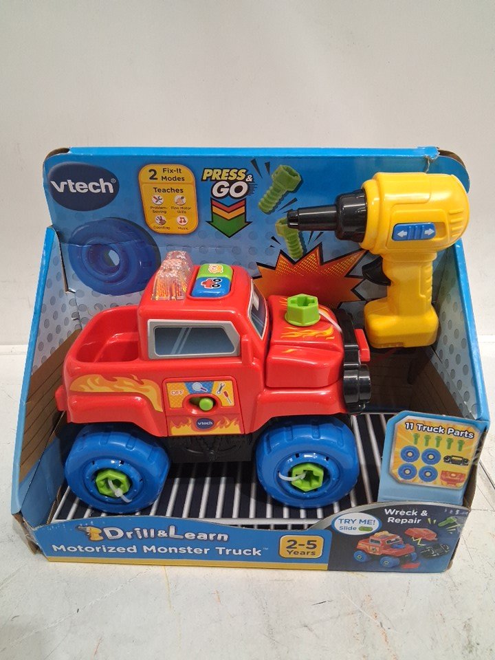 2PC VTech Drill & Learn Motorized Monster Truck with light and sound - Red/Yellow - (Model: 5763)