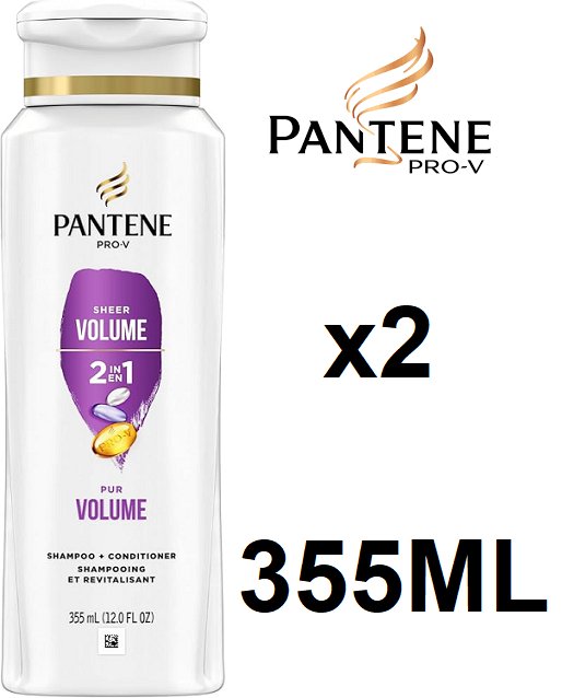2 pantene pro-v sheer volume 2 in 1 shampoo + conditioner - 355ml each