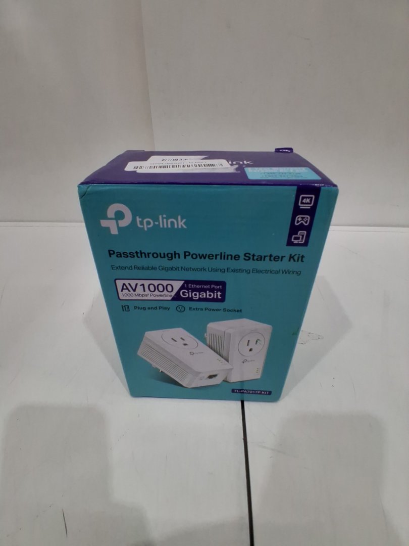 2PK TP-Link AV1000 Powerline Ethernet Adapter - Gigabit Port, Plug and Play, Extra Power Socket for Additional Devices, Ideal for Smart TV (model: TL-PA7017P KIT)