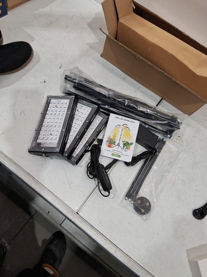 LBW Grow Light with Stand, Tri-Head LED Plant Light for Indoor Plants, Full Spectrum 150 LEDs - 15" to 63" - black - (model:c0047)