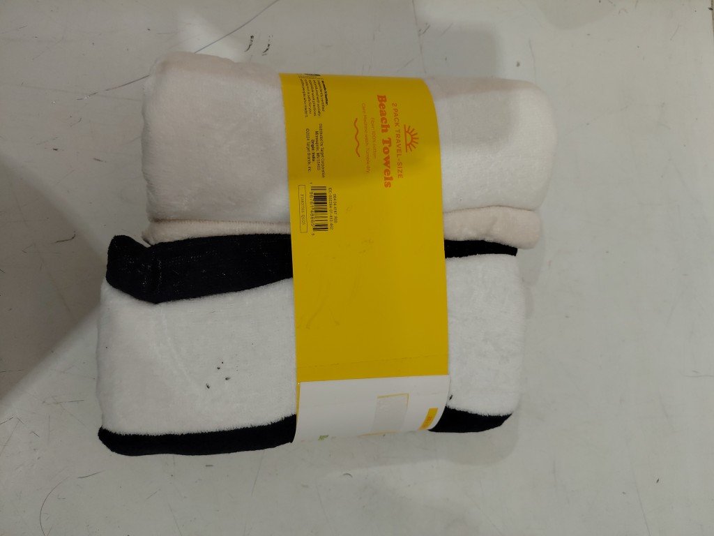2pk sun squad travel size beach towels - 28" x 58" - black/white/beige striped