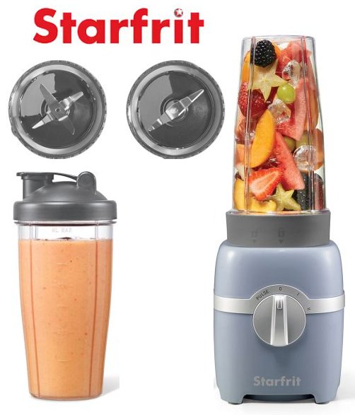 Starfrit Personal Blender With 2x Blades, Cups & Lids - 828ML Capacity - 300w - grey (model: BL3416)