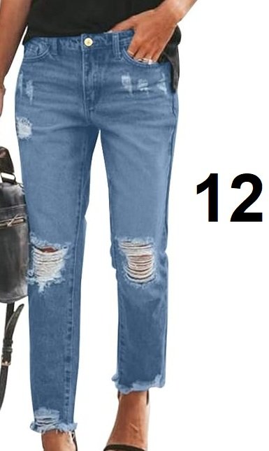 women's sidefeel Stretchy Ripped Distressed boyfriend denim jeans - size 12 - blue