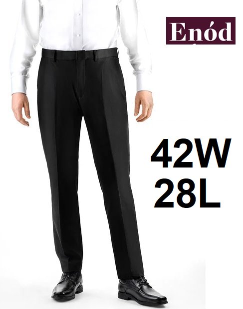 MEN'S ENOD BY ARMANDO WOOL SEMI-STRETCH CLASSIC FIT HIGH CROTCH DRESS PANTS - 42W X 28L - BLACK (STYLE: C099)