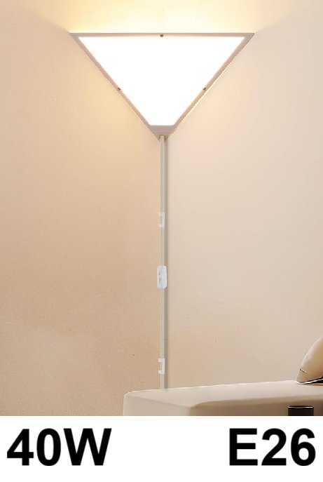HOXIYA Triangular Modern Plug-in Corner Lamp with Switch,13 FT Cord and Acrylic White Shade - 40 Watts E26 Bulb (Not Included) - White (Model: DJ-PL1102)