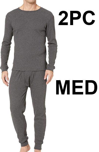 2PC Men's Amazon Essentials Thermal Long Johns Set - Medium - Charcoal