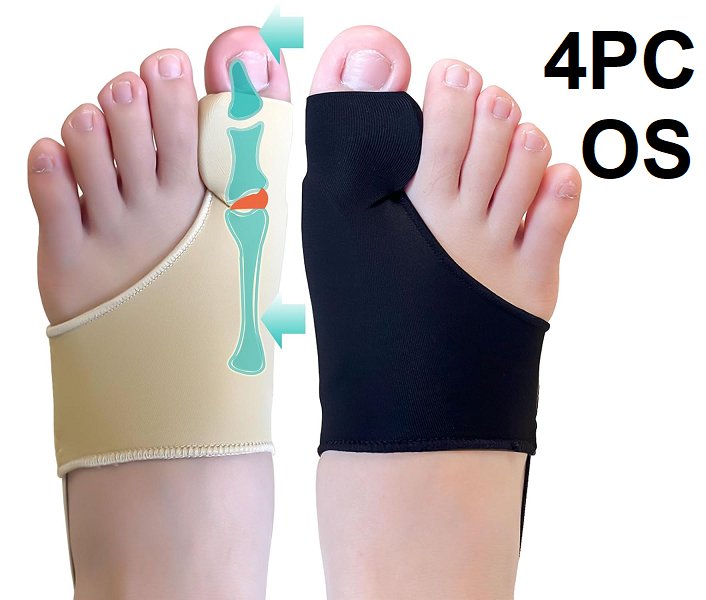4pc ksnlm Bunion Corrector Hallux Valgus sleeve with gel pad - one size - beige/black