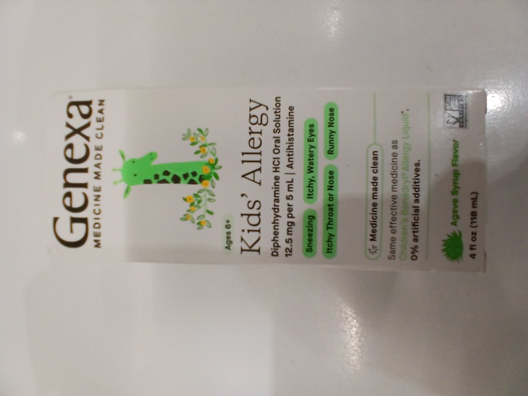 Genexa Kids' Allergy -Diphenhydramine HCl oral solution - Antihistamine - sneezinng/ ITCHY, WATERY EYES/ runny nose - 118ml