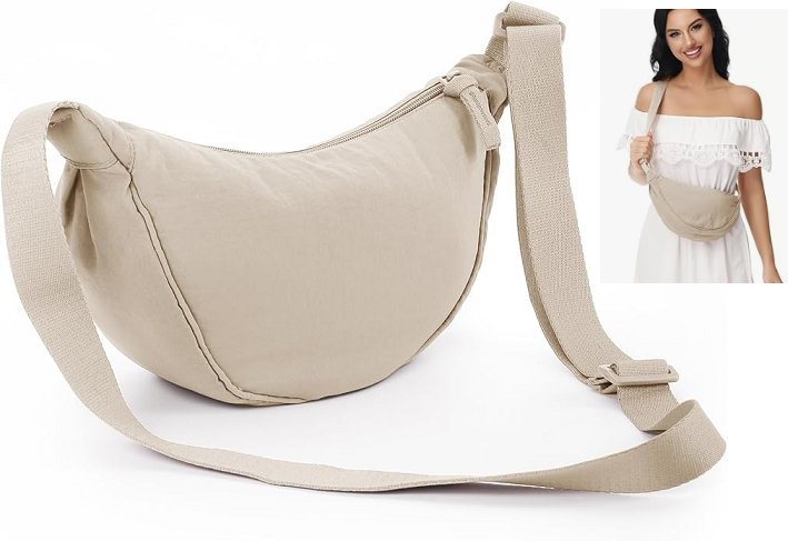 Crescent Bag Crossbody Shoulder Bag with Adjustable Strap - beige