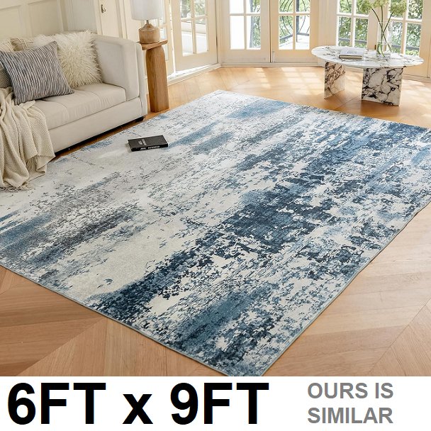 OMERAI MACHINE WASHABLE ABSTRACT AREA RUG - 6FT X 9FT - BLUE