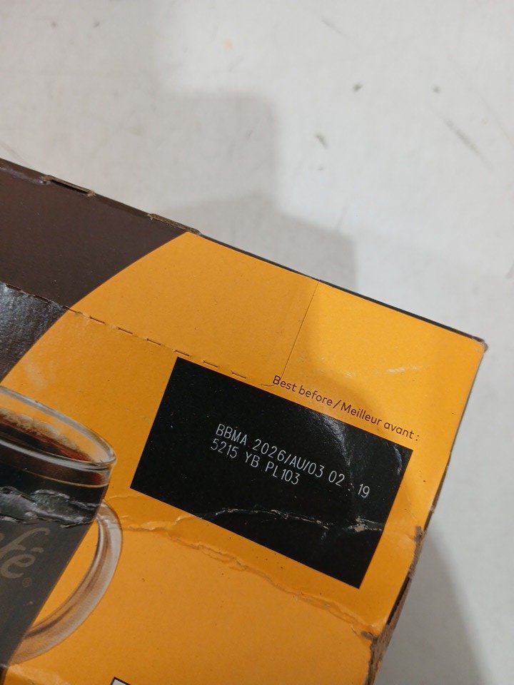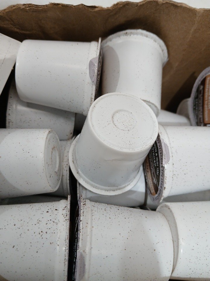 item was sealed but distressed, opened due to noticing coffee grinds coming out of the box - one cup was damaged