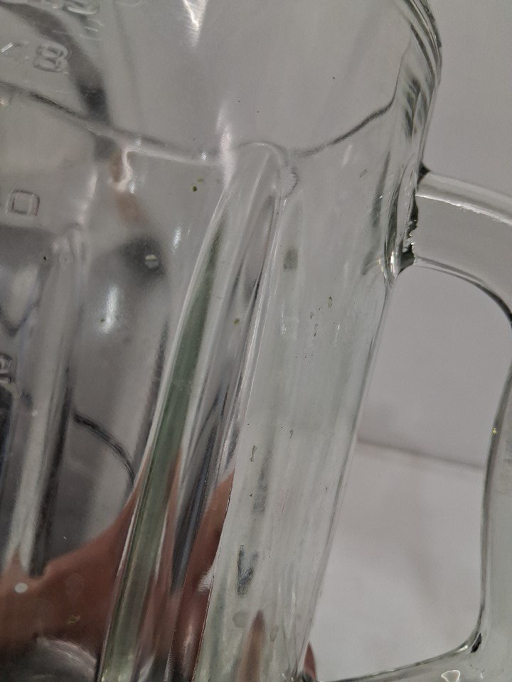 There is some slight discoloration and residue on the inside of the glass, as well as some light stains on the base indicating some previous use, but appears to be in good condition and function without issues - see photos.