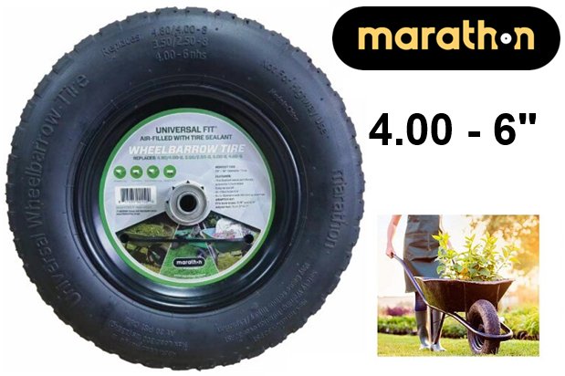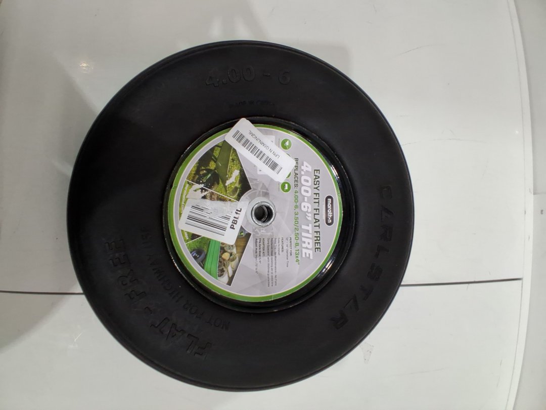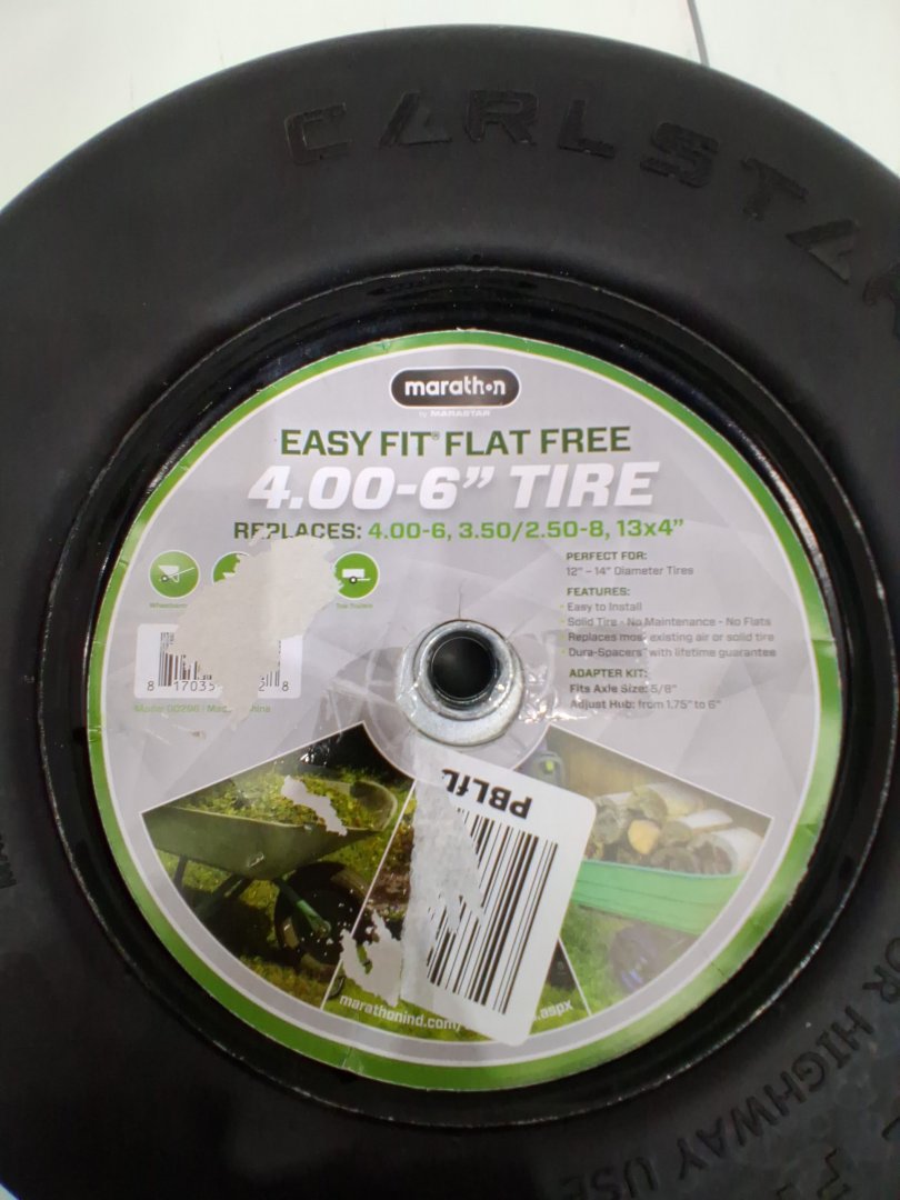 Marathon replacement easy fit flat free tire for wheelbarrow - 4.00-6" - 5/8" axle - 1.75" - 6" hub - Black (Model: 00296)