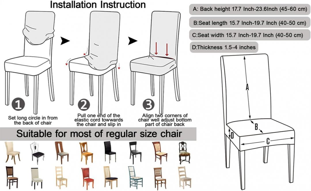 6PK JMYdecor Soft Spandex Chair covers for kitchen, fractal design - multicoloured