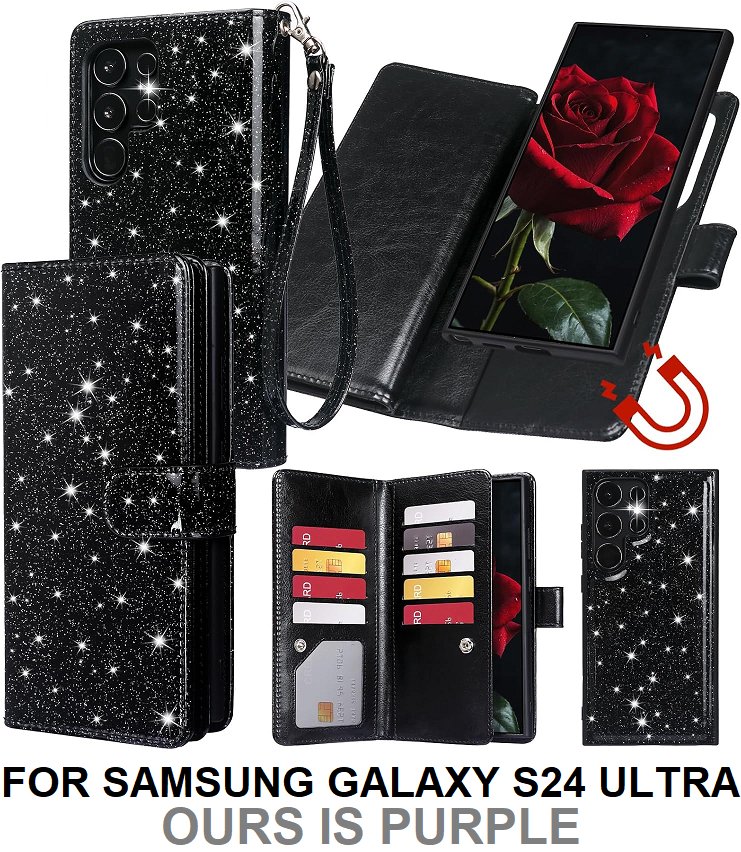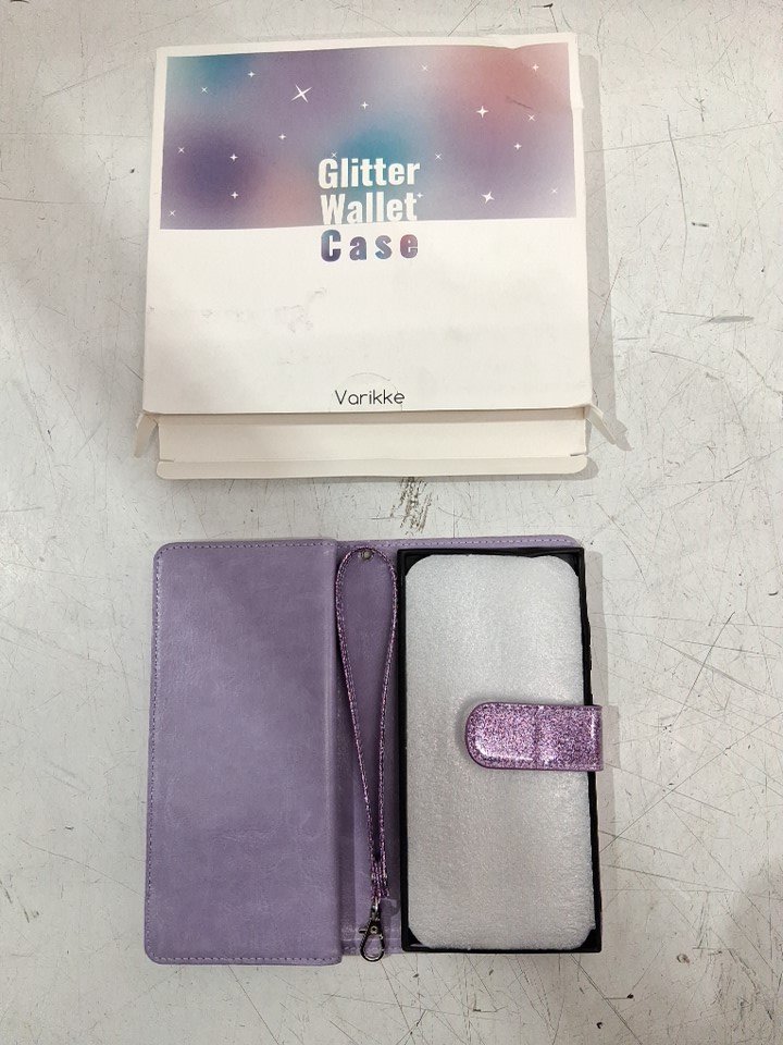 Varikke glitter magnetic phone case and wallet with wrist strap - for samsung galaxy s24 ultra - purple