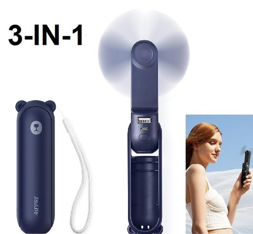 jisulife 3-in-1 rechargeable usb portable mini fan - with 2 wind speeds and flashlight (model: F8P)