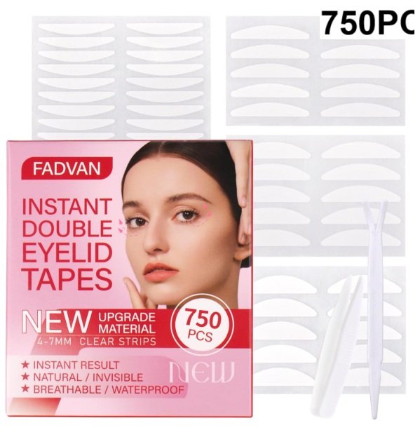 750PC FADVAN Instant Invisible Ultra-Thin Breathable long-lasting Eyelid Lifter Strips for Hooded, Droopy, Uneven, Mono-eyelids