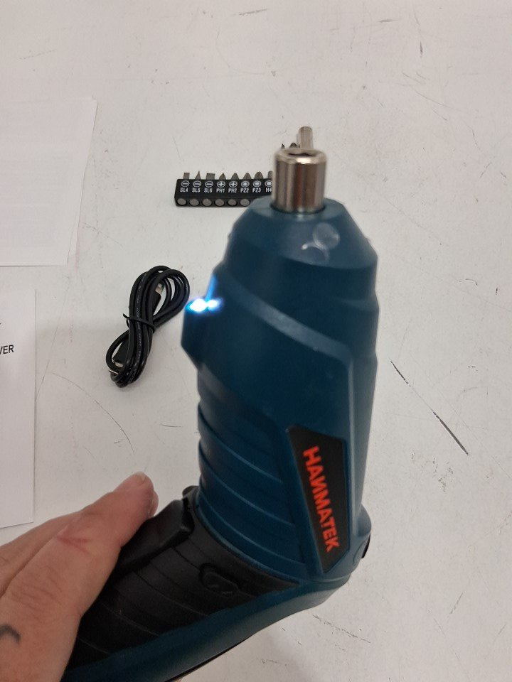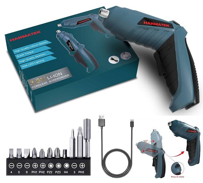 hanmatek cordless electric screwdriver - rotates 90 and 180 degree with rechargeable battery and led light - Blue