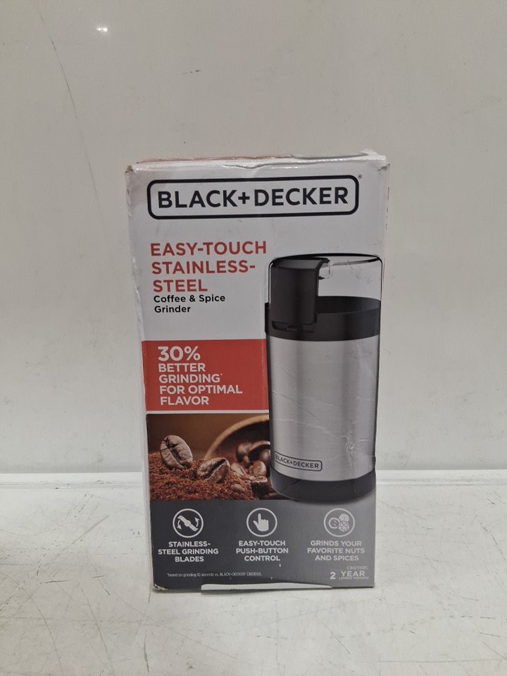 black+decker stainless steel coffee & spice grinder - 3.5" x 7" - 120v - stainless steel/black (model:cbg110sc)