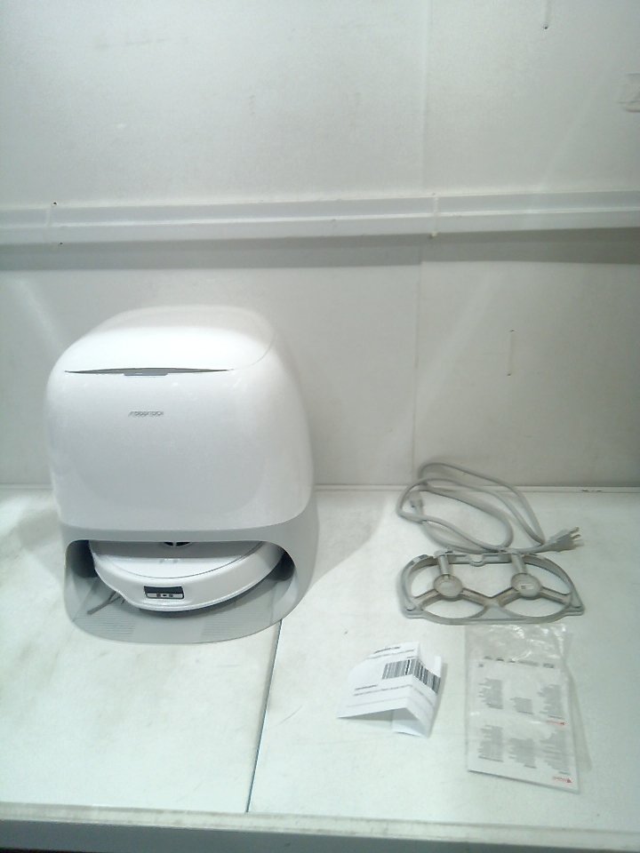 There is dust and light markings on the bottom of the vacuum, charging base and in the dust bin. Tested for power, movement and returning to base. (SEE PHOTOS)