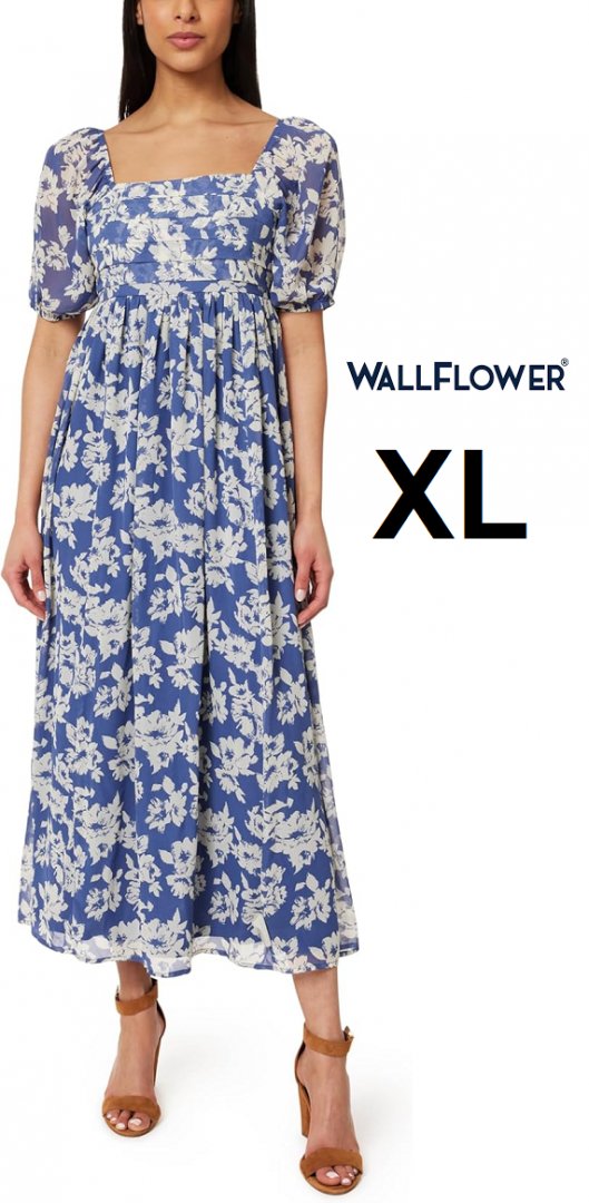 women's wallflower Eliza Pleated Bodice Puff Sleeve Chiffon Maxi Dress - x-large - gray - (style: W9U14831T)