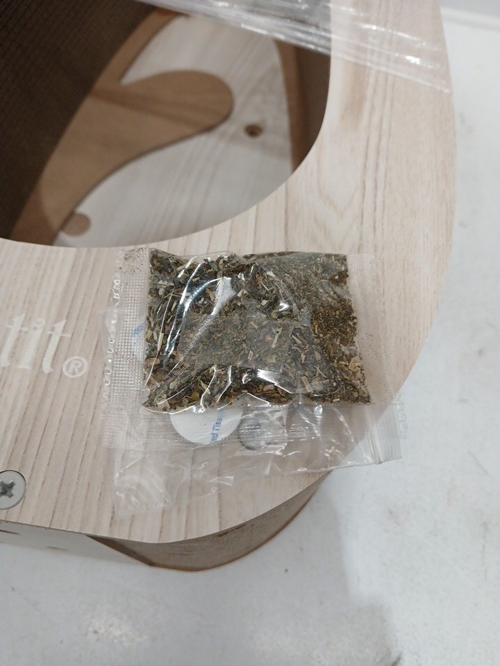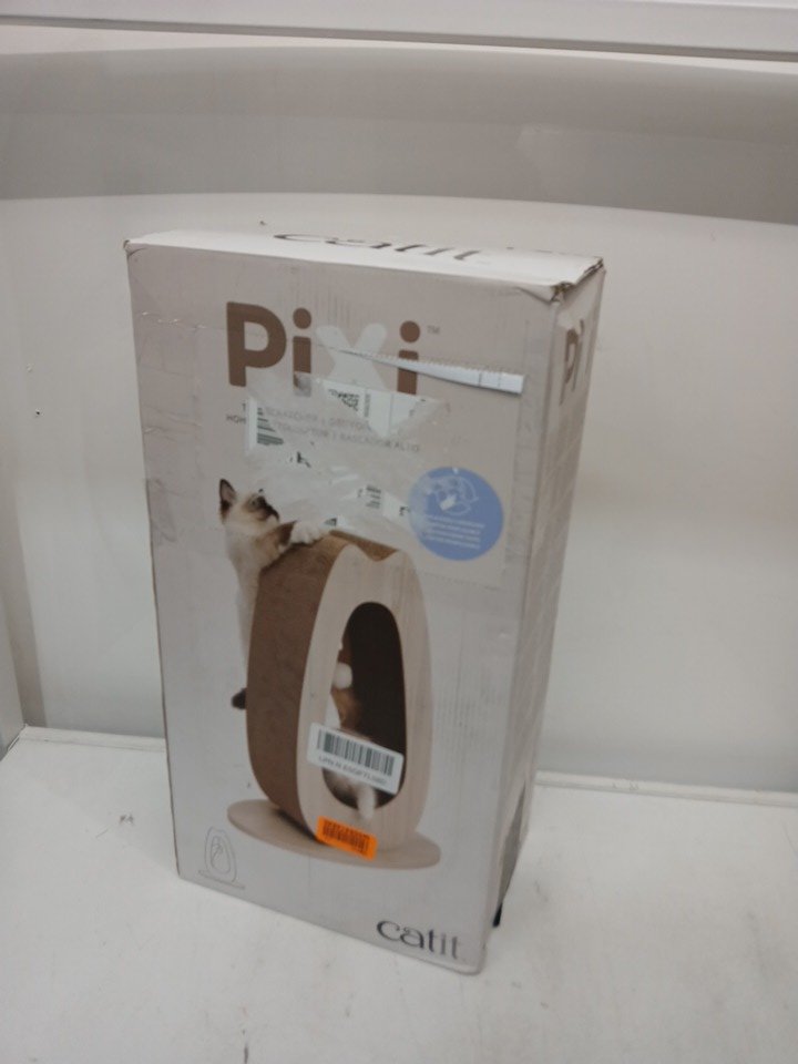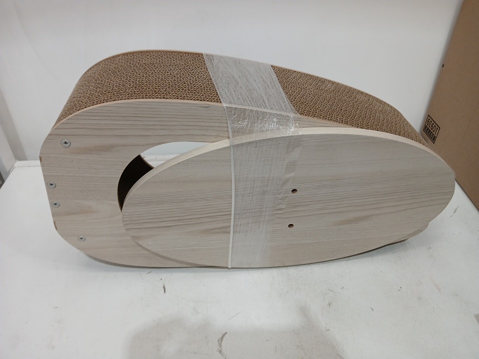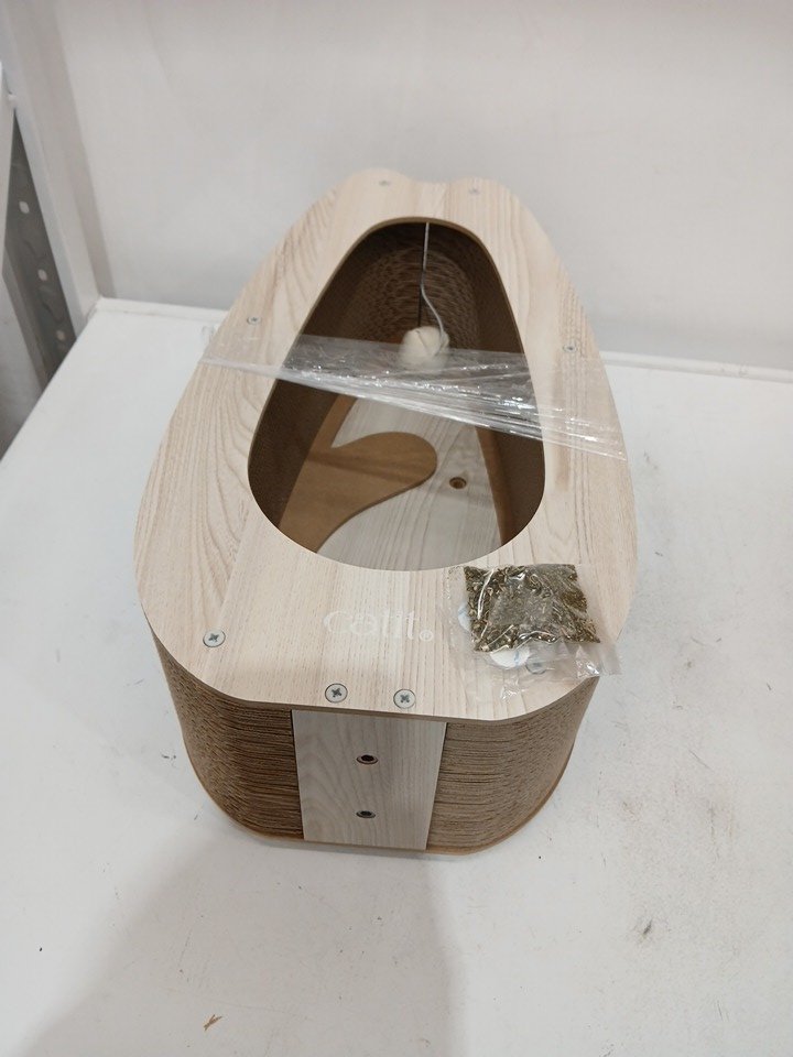catit pixi corrugated cardboard scratcher with hanging feather ball toy - modern oak
