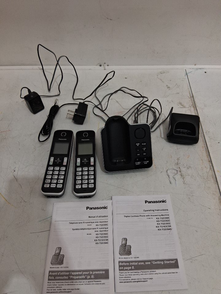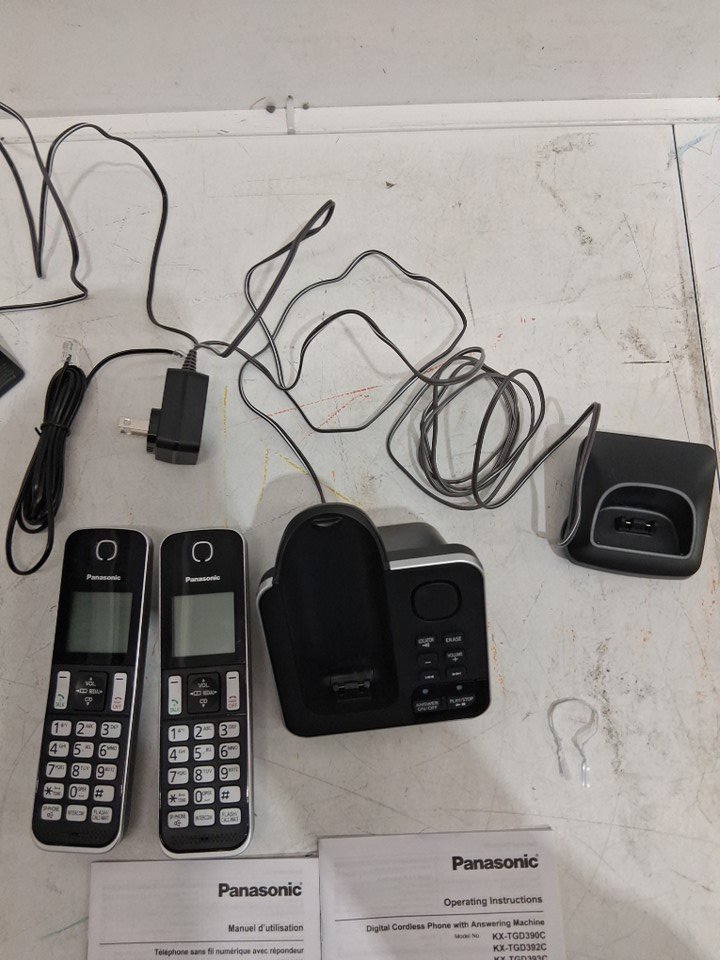 panasonic 2 handset expandable digital cordless phone with answering system - black (model: kx-tgd392cb)