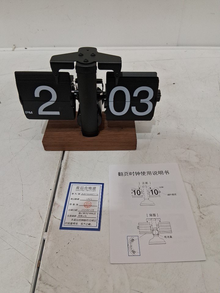 Retro Digital Flip Down Clock, Battery Powered Internal Gear Operated - BLACK/WALNUT ( MODEL: HY-F115 )