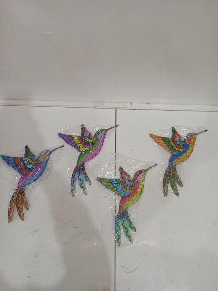 4PC METAL HUMMINGBIRD WALL ART DECOR - MULTICOLOR