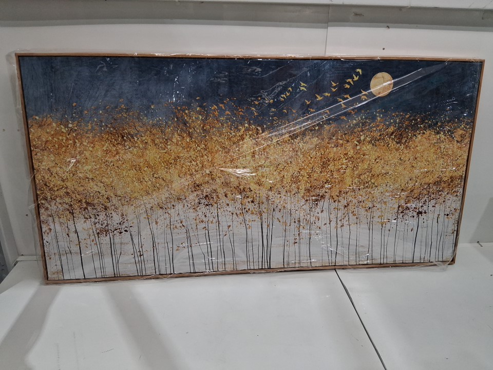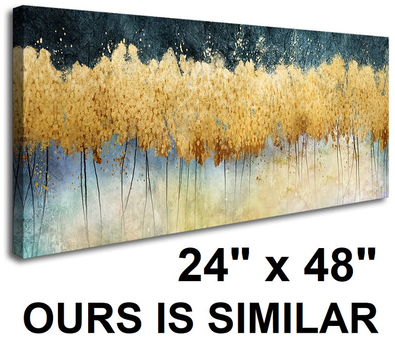 Golden trees at night canvas wall art - 24" x 48" - yellow/blue
