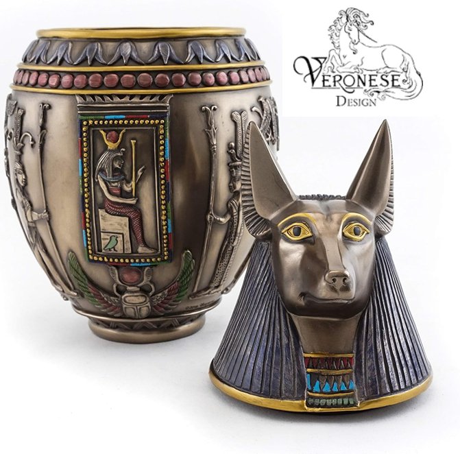 Top Collection veronese design Brass Ancient Egyptian Anubis Canopic Jar – 10" - Multi-colour (model: WU77356V4)
