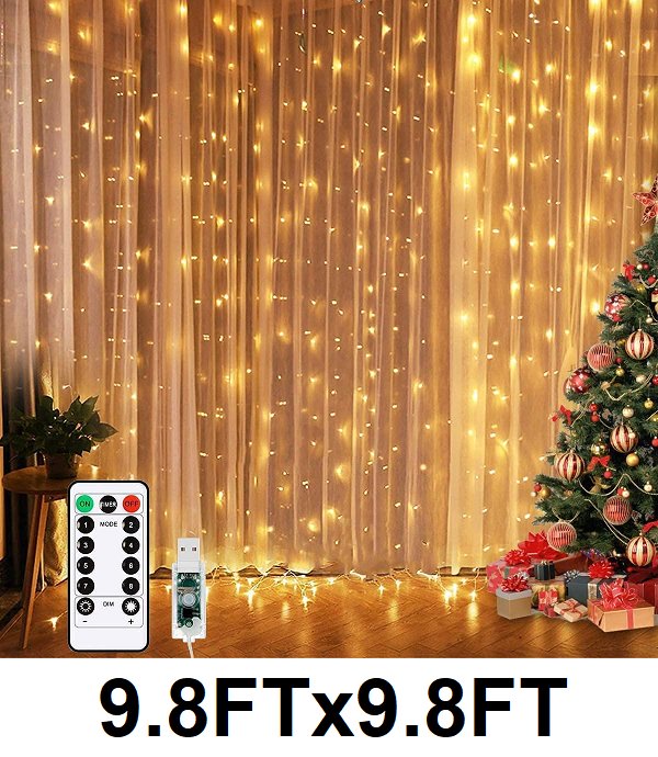 Unihoh 300 LEDs Curtain Lights Twinkle Lights W/ 8 Modes USB Powered