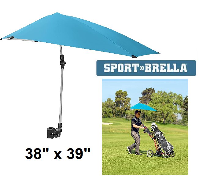 SPORT-BRELLA VERSA-BRELLA ADJUSTABLE UMBRELLA WITH UNIVERSAL CLAMP, SPF 50+, 38'' x 39'' - AQUA (MODEL: 10966)