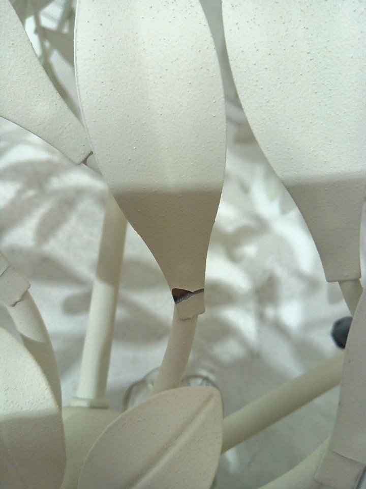 There is some very minor chipping/cracking of the paint on some of the leaves. (SEE PHOTOS)