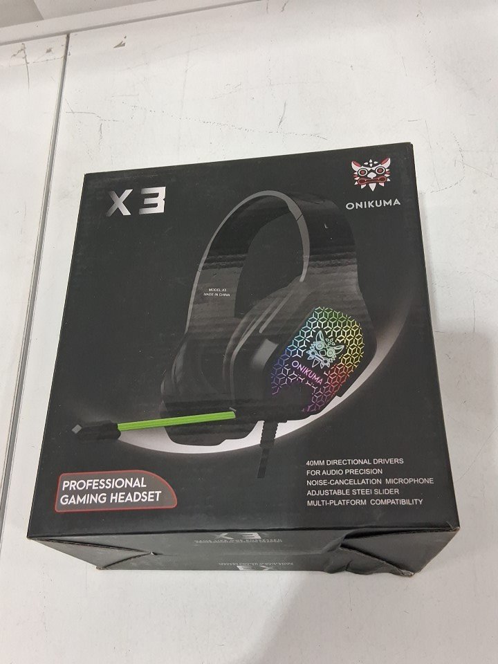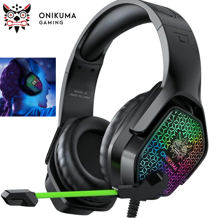 Onikuma X3 Gaming Headset - over ear Headphones with Mic, Noise Cancellation, LED Light - black (model: x3)