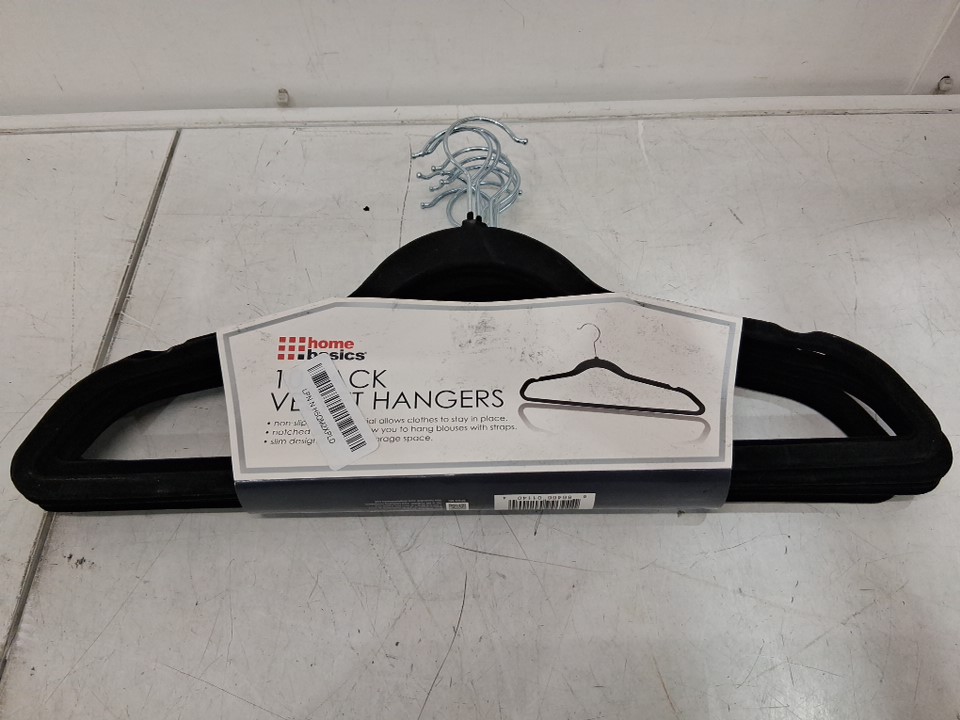 10PK HOME BASICS VELVET CLOTHING HANGERS - black
