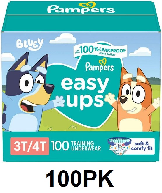 100PK PAMPERS EASY UPS DISPOSABLE ABSORBANT TRAINING UNDERWEAR - SIZE 3T-4T (30-40LBS) - blue & aqua