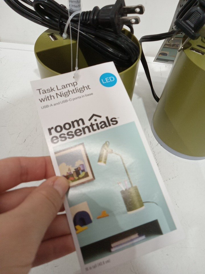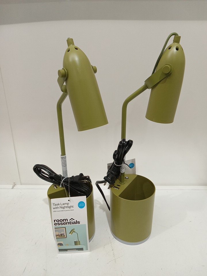 2 Room Essentials task light Novelty Table Lamp desk Organizer with usb-a and usb-c ports - dimmable - green