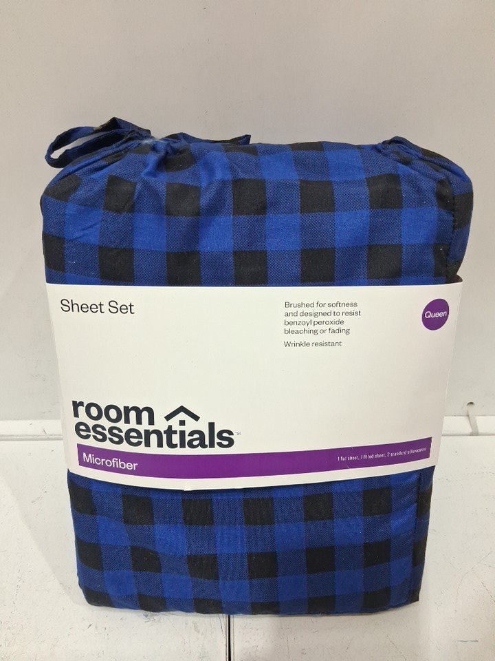 4PC room essentials microfiber sheet set - QUEEN - blue buffalo check