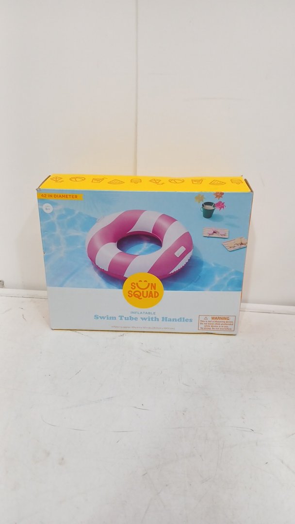 SUN SQUAD IFLATABLE SWIM TUBE WITH HANDLES - 42" - PINK/WHITE