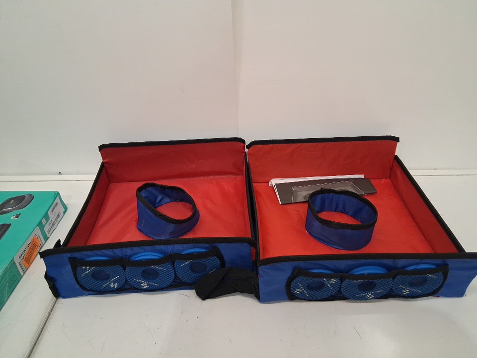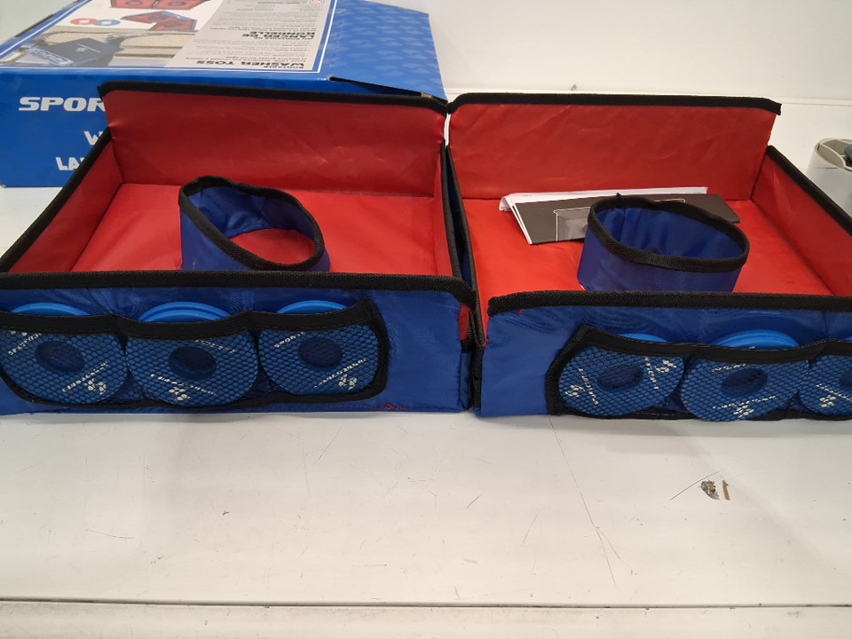 ring toss has light dirt stains inside, comes with two sets of blue washers