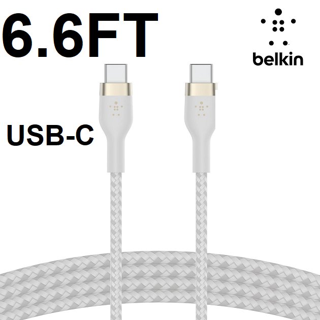 Belkin BoostCharge Pro Flex Braided USB-C to USB-C Charger Cable - 6.6FT - WHITE