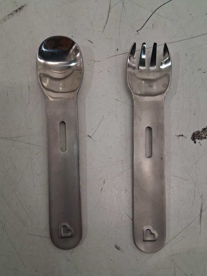 Fork and spoon have light signs of prior short-term use. (See photos)