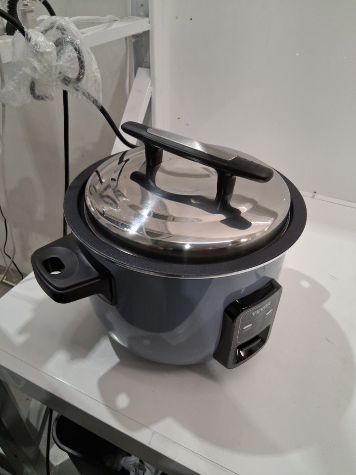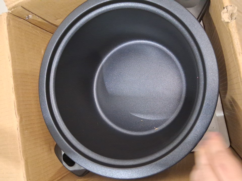 Tested for heat and power Very light dried water marks on the inside of pot lid Pot itself and heat pad appear like new