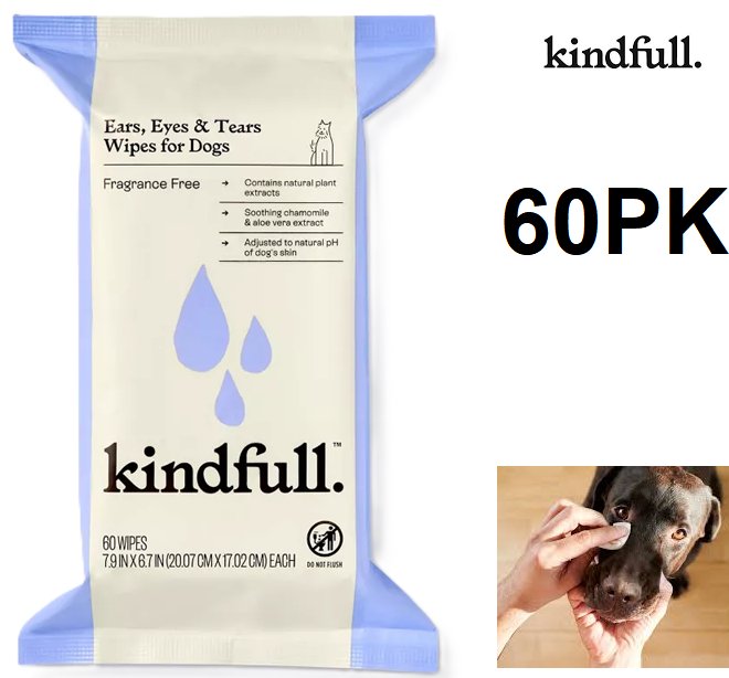 Kindfull Ears, Eyes and Tears Dog Wipes - 60PK