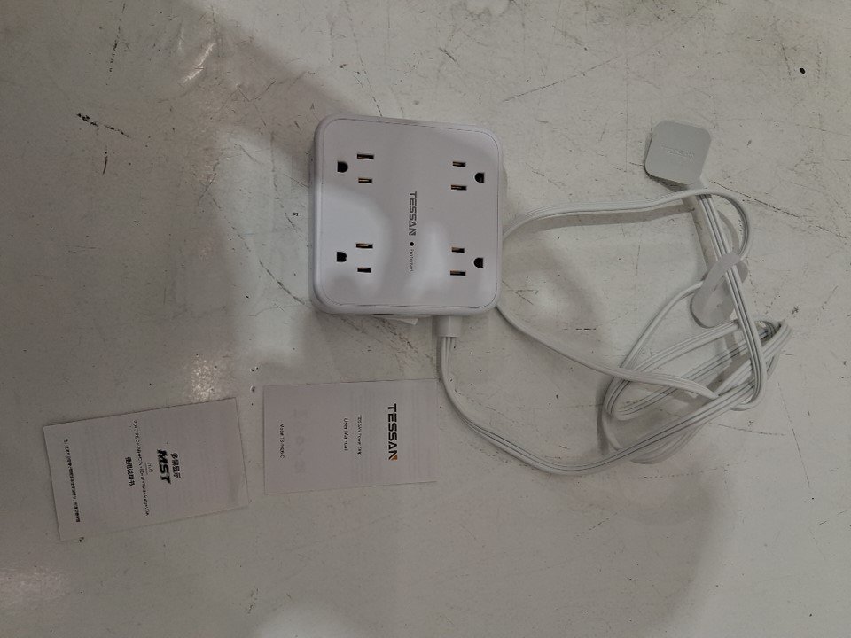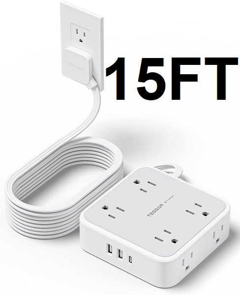 tessan power strip extension cord, ultra thin flat plug, 4 outlet, 2 usb-a ports, 1 usb-c port - 15FT - white (model: ts1026-c)