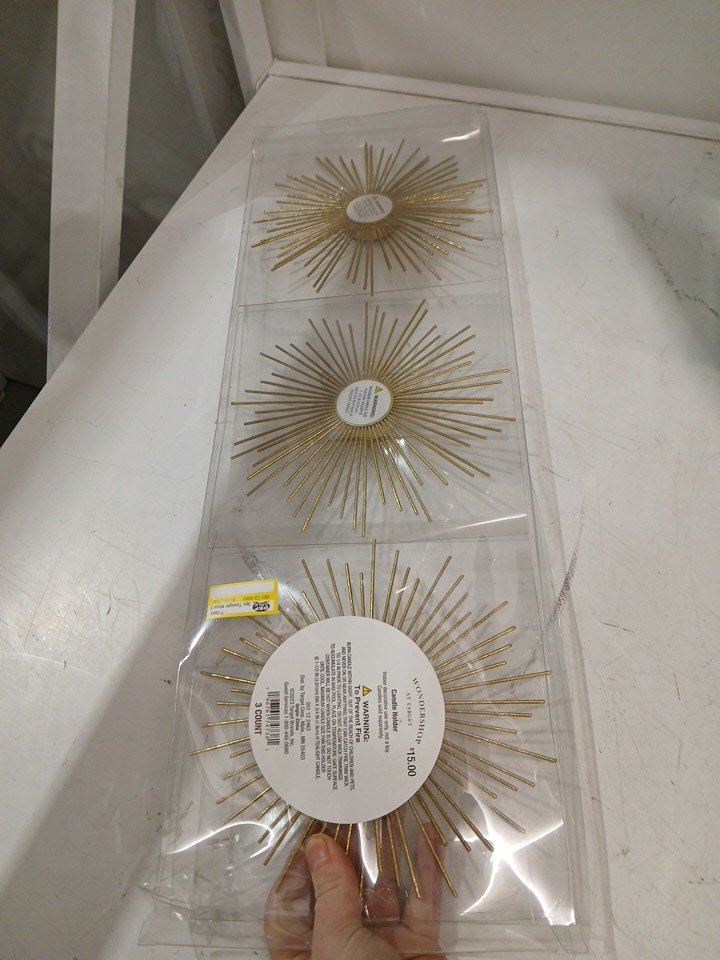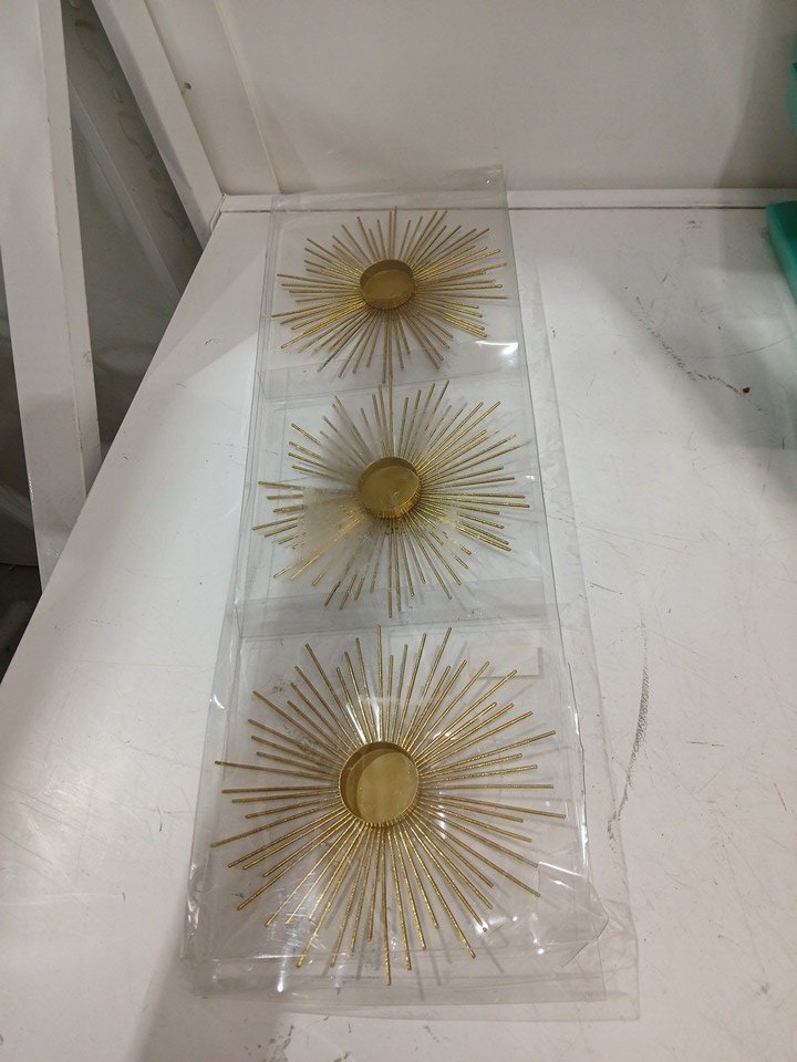 3PK WONDERSHOP Sunburst CANDLE Votive - 7" - GOLD